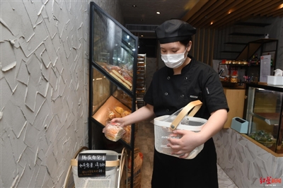 熊小姐是面包店的老顾客。6月14日下午,她专门开车来买面包,在选购了三个面包后,熊小姐从小篮子中拿了两个隔夜面包。“我试过(隔夜面包),感觉口感还不错,很好吃。这次拿回去也是和朋友分享。”熊小姐觉得,这样的免费赠送“挺暖心的”。