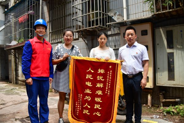 8月20日,国网宜宾供电公司在叙州区龙湾小区设立“连心桥便民服务点”,为民办实事,宣传安全用电,解决用电难题,叙州区南岸街道中渡口社区负责人与龙湾小区业主代表将一面锦旗送到了国网宜宾市供电公司领导的手中,为供电公司“连心桥”党员服务队“排忧解难暖民心,人民电业为人民”的暖心服务点赞。
