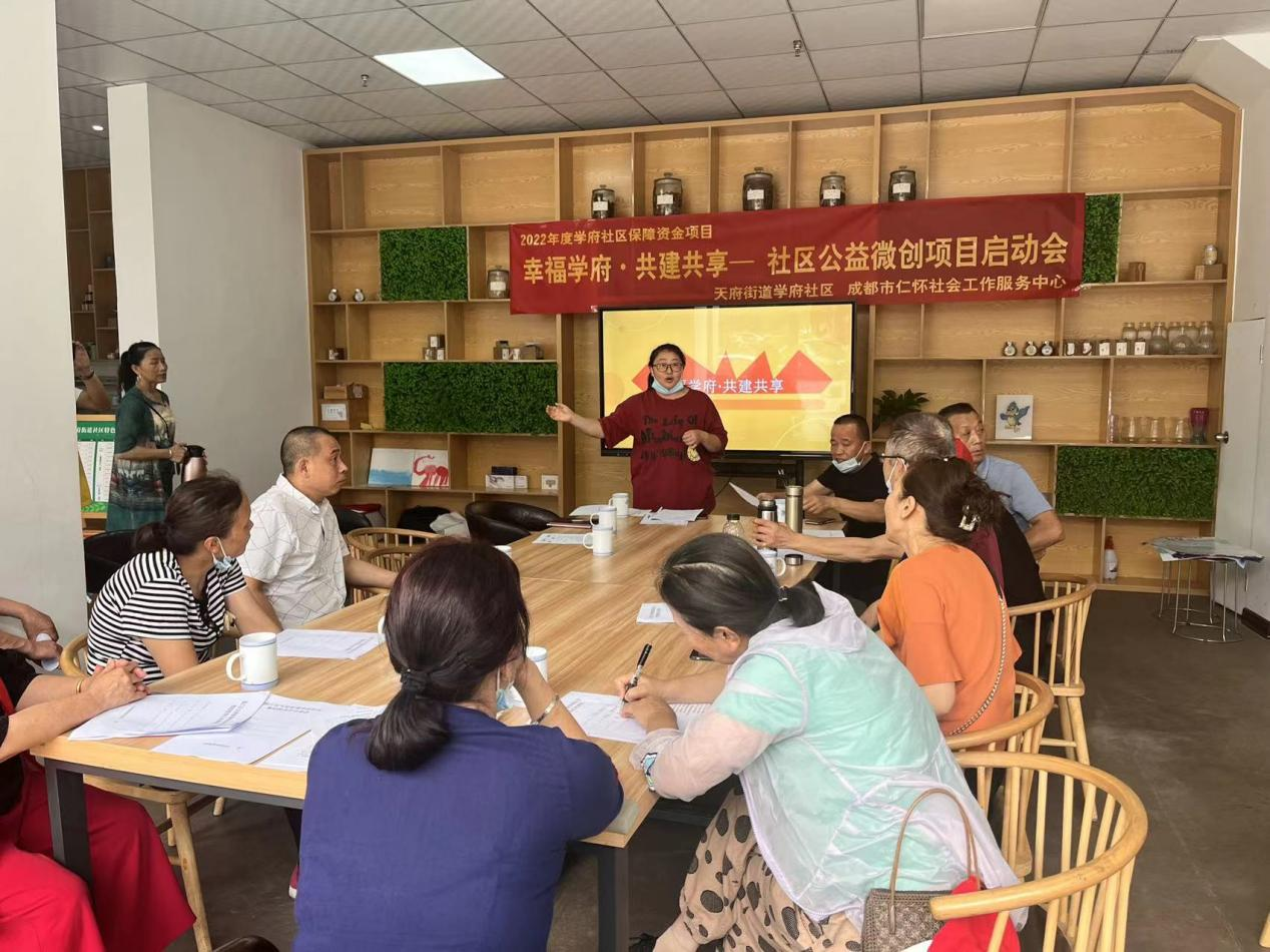 四川新闻网成都6月16日讯 6月16日上午,温江区天府街道学府社区的党员代表、居民骨干、公益组织负责人等早早来到学府社区健康生活馆,等待参加社区首届微创项目启动会。此次由温江区天府街道学府社区携手成都市仁怀社会工作服务中心、成都市翱翔社会工作服务中心承办的“幸福学府·共建共享”活动顺利开展,现场有20余名社区居民骨干参与。