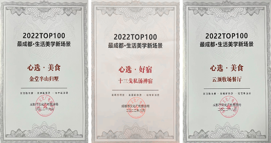 四川新闻网成都6月29日讯 在近期的“向往的生活在成都”2022“最成都·生活美学新场景”发布暨暑期游启动仪式上,100个2022“最成都·生活美学新场景”被推介,其中,金堂县共有3个点位入选,分别是云顶牧场餐厅、拾三戋私汤禅宿、半山归墅。