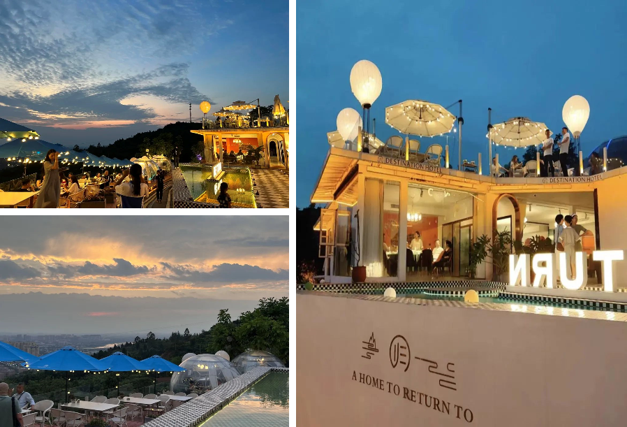 从成都市区出发,不到一小时车程到达金堂的“小圣托里尼”——半山归墅,一个集美食休闲娱乐于一体的综合性网红打卡地。它远离城市喧嚣与浮躁,屹立在半山之中,时尚轻奢、风格独特。这里的菜品有鲜美无比的鱼火锅和百菜百味的新川菜,每个包间有不同的时尚主题,品下午茶、求婚、生日派对都是不二之选,夜幕降临时有炫酷十足的调酒大师现场表演烟火调酒!