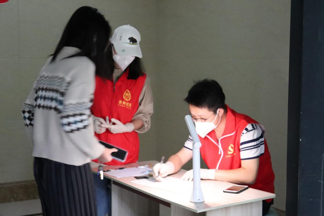 温江区永宁街道杏林社区微网格员刘俊宝做好核酸检测人员登记
