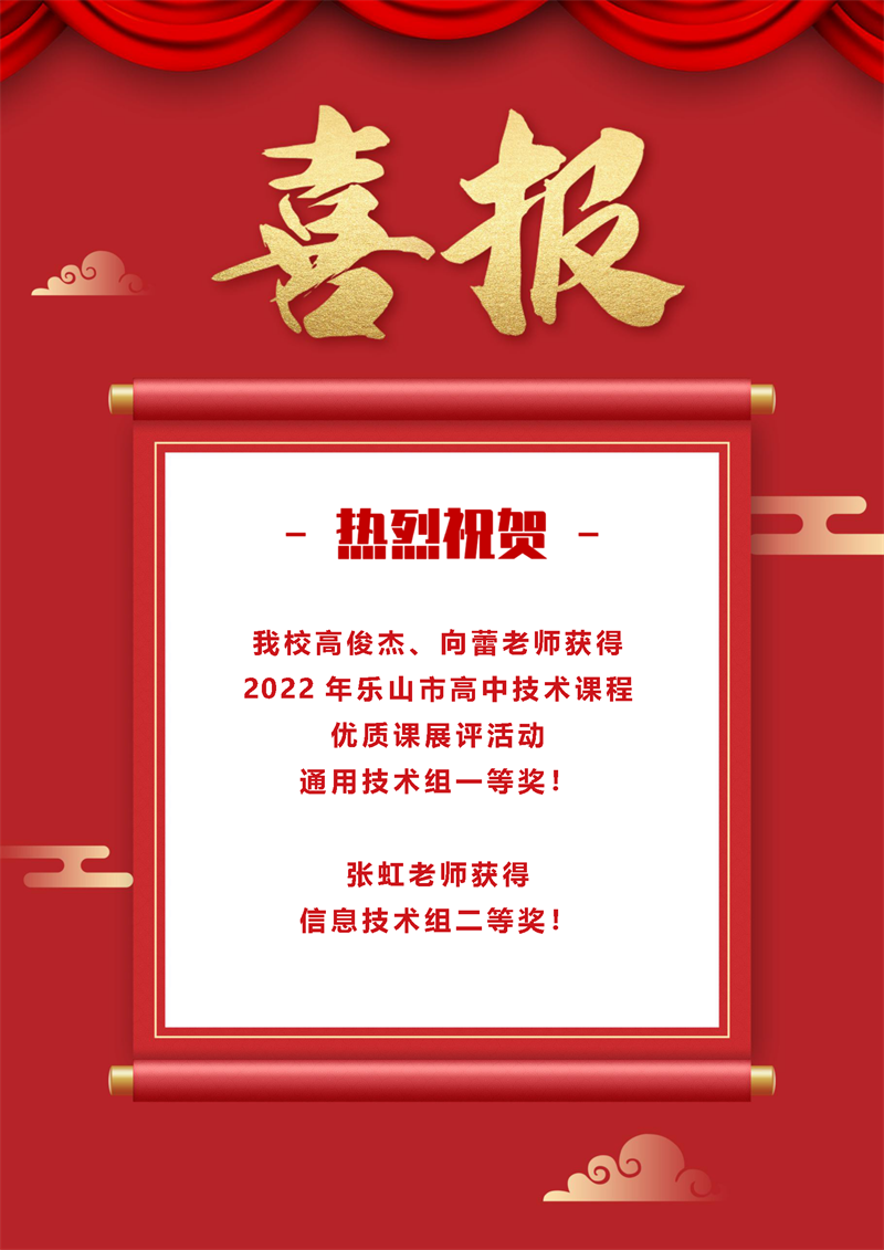四川新闻网成都11月16日讯 11月15日,从乐山市教育科学研究所传来消息:在刚刚结束的“2022年乐山市高中技术课程优质课展评”活动中,草堂高中技术教研组的高俊杰、向蕾两位教师荣获通用技术组一等奖,张虹荣获信息技术组二等奖,在新学期再次为学校争得了荣誉。
