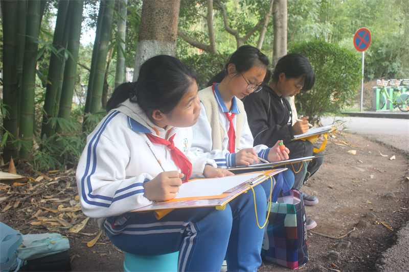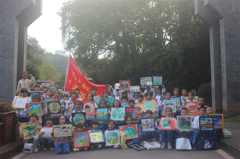 四川新闻网成都12月2日讯 为了丰富学生的课内外学习生活,培养学生的美术兴趣,使学生在艺术的熏陶中健康成长,近日,沐川县实验小学一百余名学生在美术组老师的带领下来到桃园山居正门河畔开展“爱家乡•画家乡”采风写生活动。