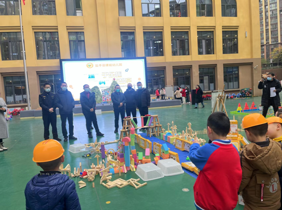 调研组一行到园后,在学校园长李河山的陪同下,实地查看了校园文化建设、校容校貌、食堂、安全、保教、意识形态、疫情防控等工作;每到一处他们都细心观察,仔细询问,并及时给予指导性的意见。同时,在外操场上,对幼儿园正在进行的本土资源课题研究实践活动的“建于乐趣 构筑盐亭”的建构比赛大加赞赏……