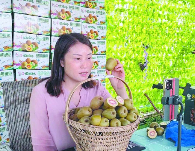 猕猴桃丰收季,都江堰农场主付艳红直播带货。
