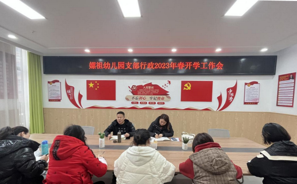 精心部署,逐梦前行。为推进本学期工作、做好学期初工作部署,嫘祖幼儿园领导班子从卫生保健、安全检查、师德师风、教育教学、家长工作、后勤管理、开学前准备等方面部署了新学期的工作,嫘祖幼儿园党支部书记、园长李河山传达了教科体局开学工作会议精神,并组织学习了相关文件,鼓励大家在新的一年要积极工作,大胆创新,赢在未来。