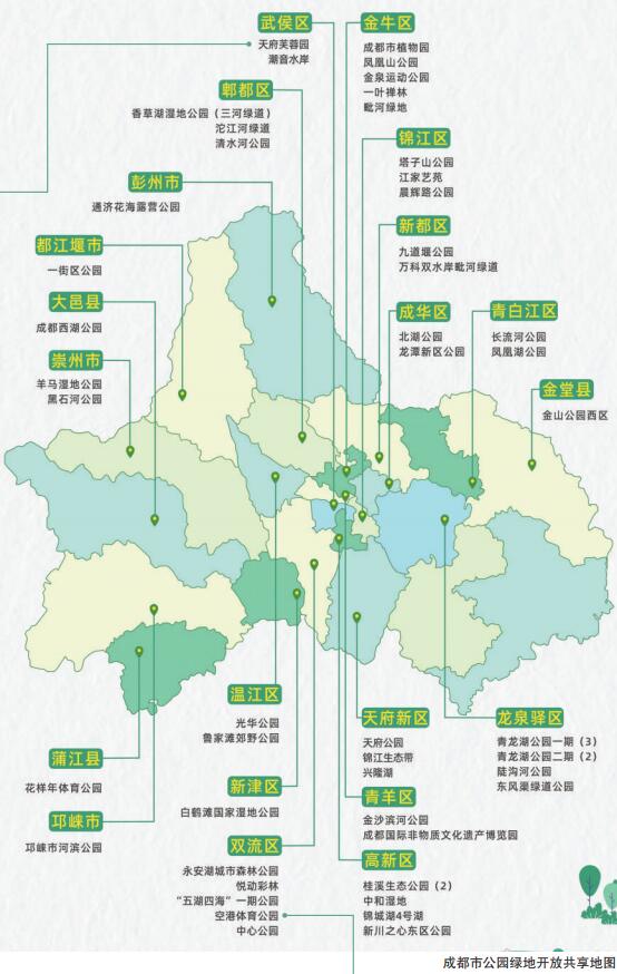 6月6日,成都市公园城市建设管理局正式发布《成都市公园绿地开放共享地图》。截至目前,全城共有48个共享公园扩大开放共享新空间52处,每个点位均大于1000平方米,累计开放面积约100万平方米。