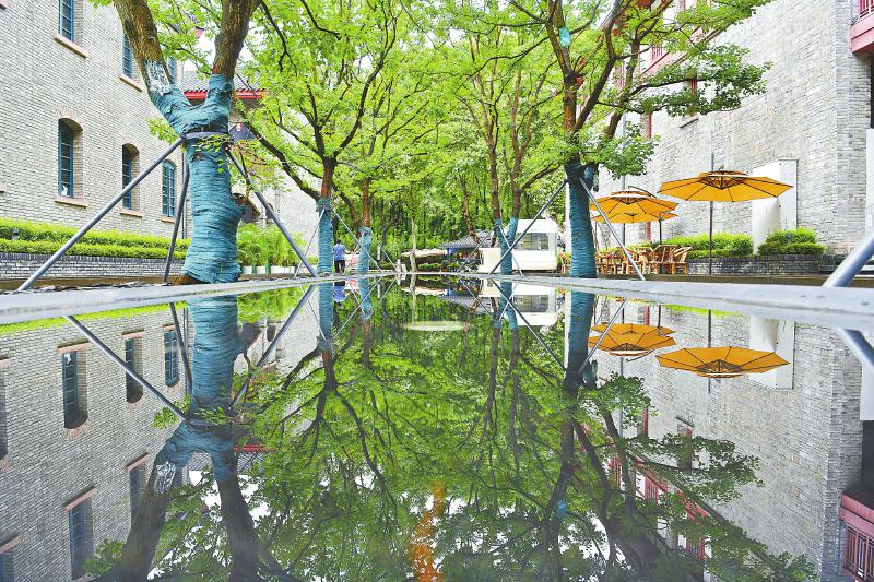 与抚琴西南街相隔不远的祠堂街是条有着百年历史的老街,抗战时期,这里坐拥成都70%的书店,各大报刊、文艺社团云集于此,四川电影院也诞生于此,曾被誉为“天府文化现代化新起点”。夏日里,祠堂街上的38棵法国梧桐枝叶相交,覆盖出一条美丽的林荫道。修葺一新的老院落和建筑在斑驳树荫下更显古朴和优雅。