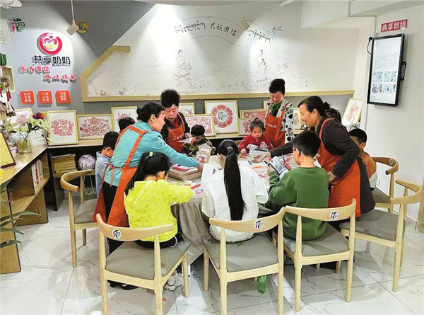“‘共享奶奶’这个项目是2019年开始做的。”杨女士向记者介绍,最开始只有3位“共享奶奶”,后来孩子越来越多,奶奶们也发动身边的老姐妹加入进来,目前社区有40多位“共享奶奶”,大多是独居老人,前后服务了400多个家庭,主要服务对象是小学生。“除了剪纸、扎染,我们还有绘画、看书等其他项目,每周奶奶们也会商量不一样的项目,来丰富活动内容。”