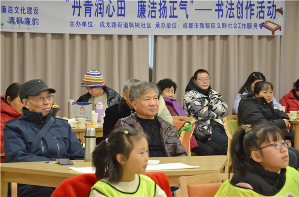 四川新闻网成都12月25日讯 12月23日,为深入推进社区文化建设,弘扬清正廉洁的价值观,培养社区居民的书法兴趣,成都市锦江区成龙路街道枫树社区联合多方力量在社区党群服务中心开展了一场其乐融融的“丹青润心田,廉洁扬正气”书法创作活动。